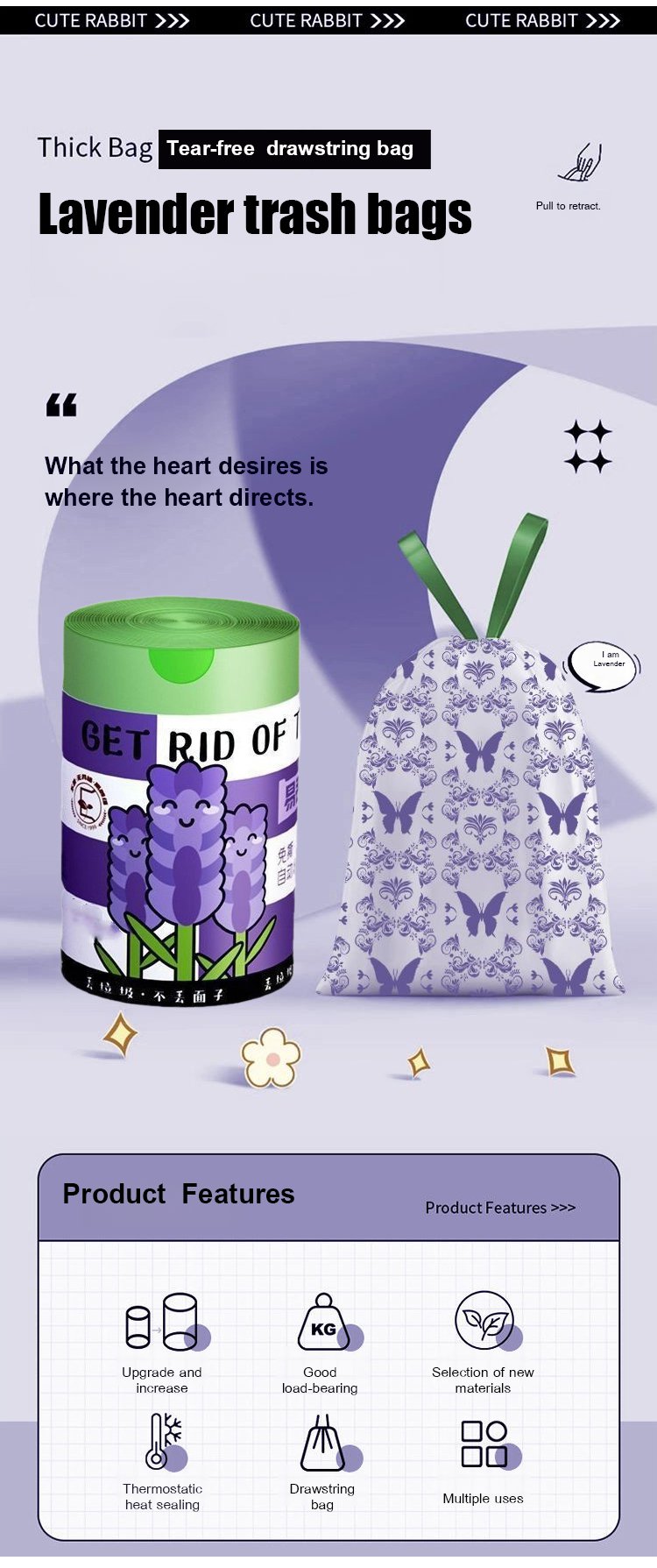 Lavender Insect-Repellent Drawstring Trash Bag
